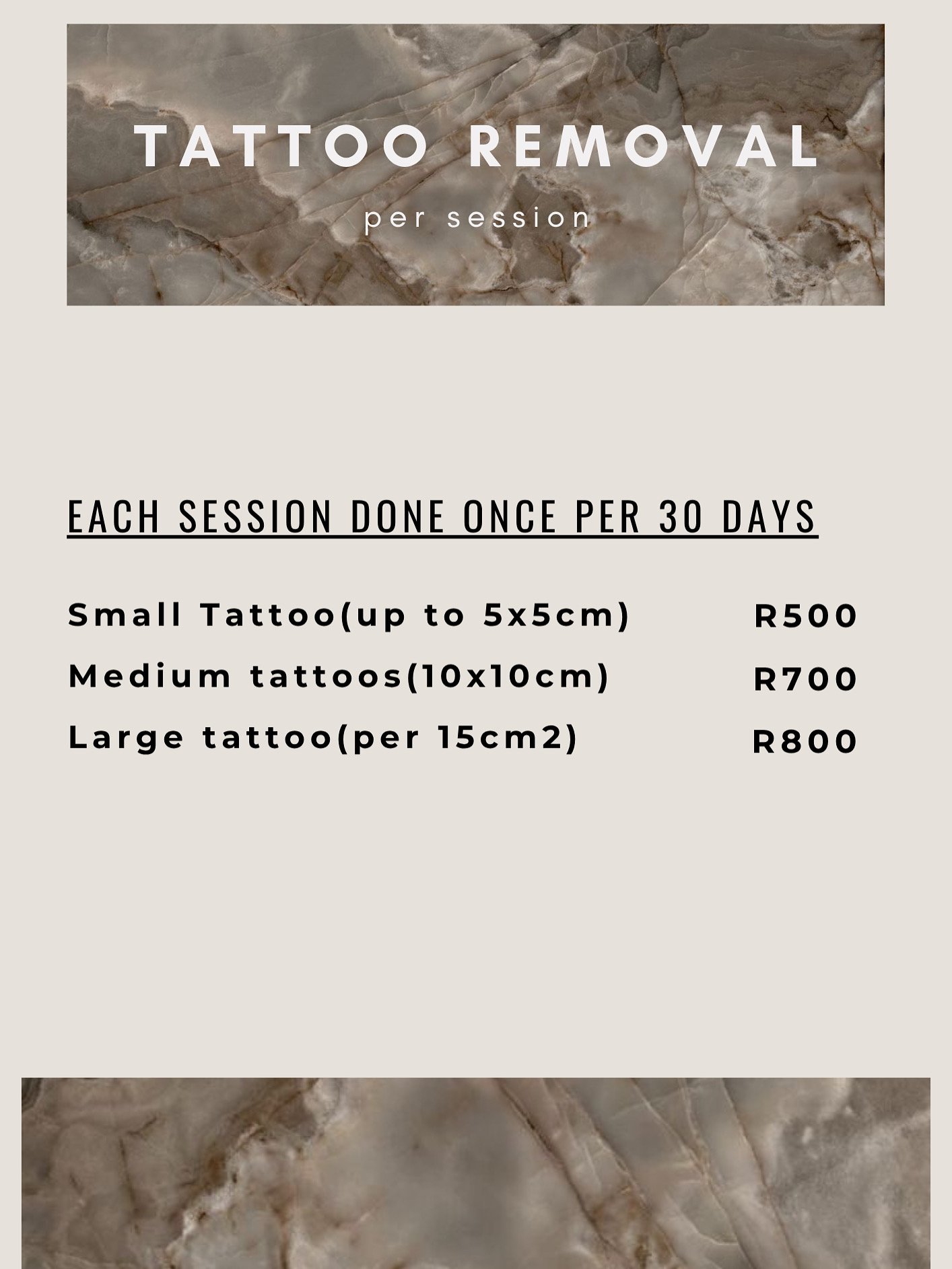 When you got your tattoo, your laser therapist will gave you a specific set of instructions to ensure that your tattoo healed properly and looked great. Laser tattoo removal has a similar reliance on great aftercare to ensure proper healing and optimal results. Full instructions will be given on the after care.
